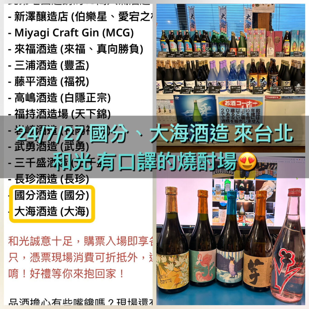 24/7/27台北燒酎活動-國分、大海酒造 有口譯 和光日本酒新品發表會